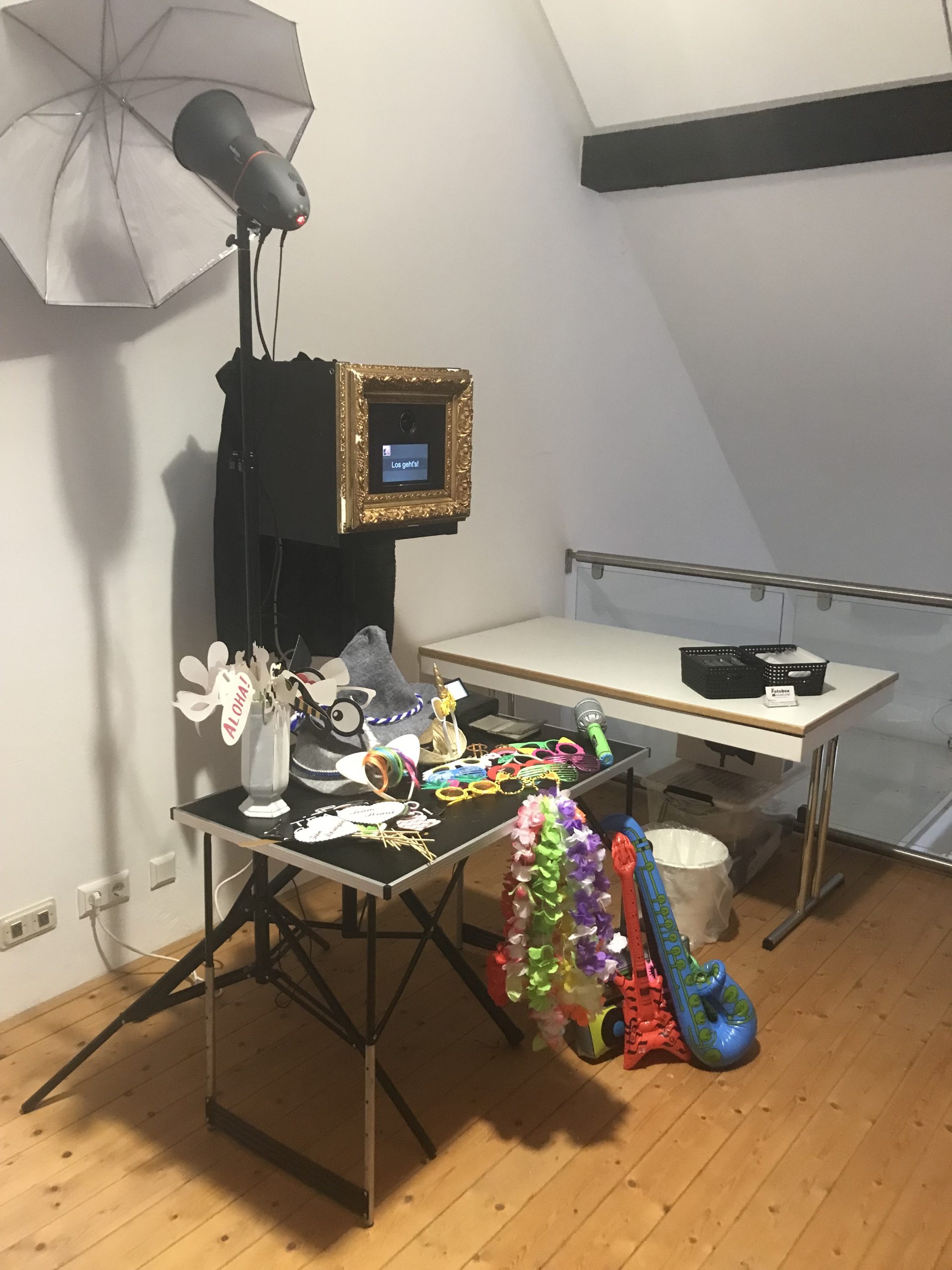 Bitte achten Sie auch darauf, dass die Fotobox ein stilles Plätzchen mit wenig Menschen-Verkehr mag. Wenn die Box mitten im Raum aufgebaut wird, ist die Gefahr für Schäden am Equipment sehr hoch.